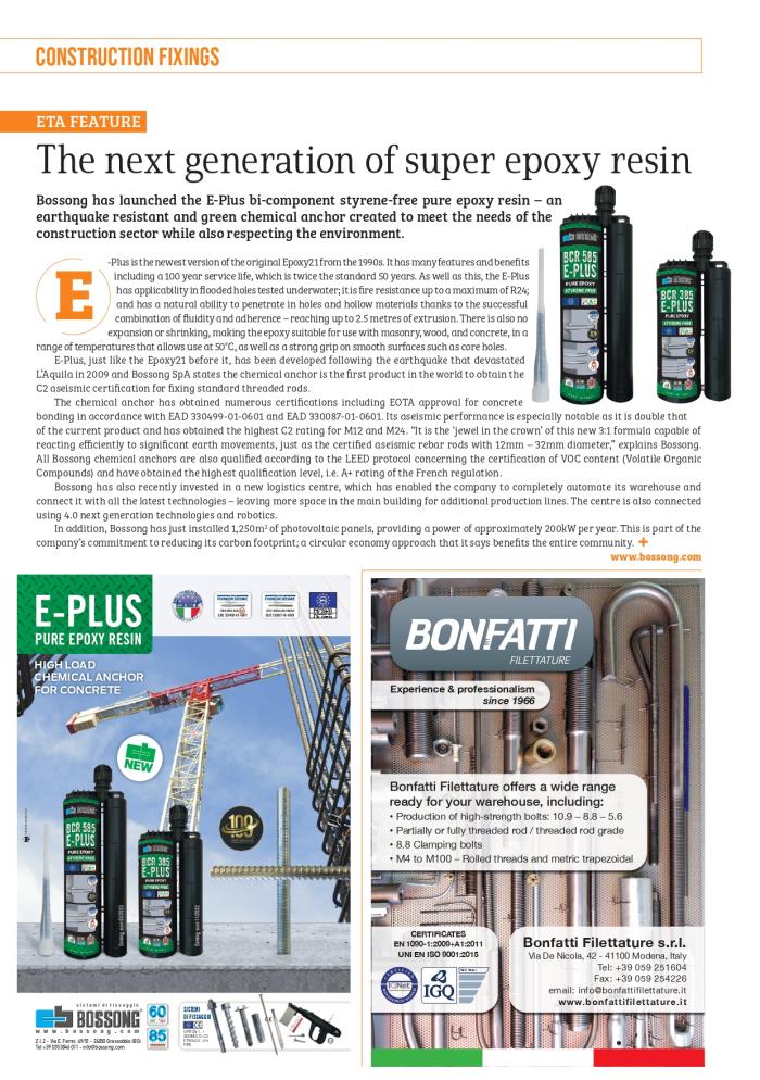 La société Bossong S.p.A. répond à cette demande spécifique des clients en proposant une gamme de chevilles chimiques qui se caractérisent non seulement par des performances mécaniques excellentes et certifiées, mais aussi par des qualifications garantissant le respect de l’environnement.